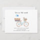 Em movimento na minha bicicleta, mude de endereço de um cartão de anúncio que inclui uma bicicleta azul feminina com cor d'água com um cesto de flores e luggages no rack. Perfeito para informar os amigos e a família sobre seu novo endereço e onde a provável festa de aquecimento de casa acontecerá. Adicione seus novos detalhes clicando no botão "Personalizar" acima