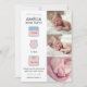 Envie aos seus amigos e família as maravilhosas notícias da chegada do seu pequeno com estes cartões de anúncio de bebê personalizáveis. Um adorável design moderno com ícones (calendário, relógio e escala para data, peso, tempo e peso) com três fotos. O menino também está disponível nesse estilo.