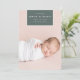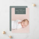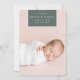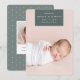 O anúncio de nascimento em chic e moderno apresenta uma foto vertical/retrato de cheio sangrando com um elemento retangular no topo, com o nome do bebê, data de nascimento e estatísticas de nascimento. Adicione uma mensagem pessoal ao verso, juntamente com uma foto adicional.