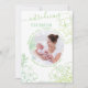 Cartão de nascimento fotográfico com delicadas linhas desenhadas flores e folhagem, escrita à mão e tipografia química. A modelo está pronta para você adicionar uma foto de bebê ou de família com seu novo bebê. Você também pode adicionar suas estatísticas e nomes de nascimento de bebês, que automaticamente curvam em volta do topo e do fundo da sua foto. A design botânica e a tipografia têm uma paleta de cores em tons de verde modernos.