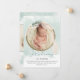 Cartão de nascimento de bebê com lavagem a água verde - perfeito para um bebê ou menina. A frente do cartão tem uma coroa de madeira bóvora rústica, embrulhada com a haste de pêssego e decorada com margarida e folhagem. Apresentar é escrito em letras casuais à mão com corações amorosos e o resto do texto que você pode personalizar com o nome do bebê, estatísticas de natalidade e seu próprio texto personalizado. O modelo de foto está configurado para que você adicione suas fotos favoritas à frente e à parte traseira do cartão.