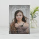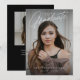 Este Anúncio de graduação de dois gráficos de script simples moderno apresenta uma foto de tamanho de cheio na parte frontal com uma sobreposição de texto branco e uma foto de trás com detalhes opcionais.