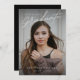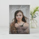 Este Anúncio de graduação de dois gráficos de script simples moderno apresenta uma foto de tamanho de cheio na parte frontal com uma sobreposição de texto branco e uma foto de trás com detalhes opcionais.