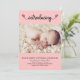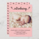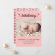 Simples "Apresentando" o anúncio de nascimento de uma menina rosa com uma fonte divertida com borboletas e um padrão de borboletas nas costas. Mude a foto, o nome e a mensagem de natalidade do seu bebê recém-nascido. Clique em Personalizar para alterar facilmente as informações.