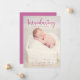 "Apresentando" em texto de fonte rosa com letra de escrita elegante com letra escrita. A foto do bebê é a estrela neste cartão de anúncio de nascimento. Personalize isso substituindo a foto pelo novo pacote de fotos da alegria e insira seu texto personalizado.