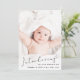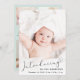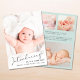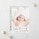 Um cartão moderno neutro em termos de gênero para anunciar o nascimento do seu bebê, com a sua foto sobreposta com "Apresentando" num roteiro de na moda com uma batida cardíaca. Por baixo adicione o seu nome, data de nascimento e estatísticas de nascimento. No verso, adicione três imagens adicionais e mensagem personalizada sobre um fundo verde de menta pastel.