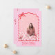 Celebre a conquista do seu formando com este anúncio de graduação personalizável e na moda! Apresentando uma foto personalizada emoldurada em uma borda ondulada, esta design mostra seu formando lindamente de uma forma sofisticada. Um formando desenhado à mão e um arco de coquete adicionam um toque comemorativo, enquanto a letra caligrafia escrita à mão traz uma sensação elegante e pessoal. A paleta de cor rosa e vermelha feminina cria um olhar vibrante, mas refinado, perfeito para honrar a Classe de 2025. Personalize o anúncio com o seu formando, escola e outros detalhes para torná-lo exclusivo deles. Ideal para enviar mensagens a pessoas amadas ou compartilhar na sua festa de formatura, este anúncio combina elegância e entusiasmo. Ordene hoje que partilhe este momento orgulhoso de uma forma que eles sempre apreciarão!