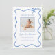 Este anúncio de natalidade chic e elegante apresenta uma mão azul desenhada, ondulada, ilustrada com um arco em torno da foto do seu bebê recém-nascido, e um roteiro manuscrito de na moda em um simples fundo branco. Perfeito para um bebê recém-nascido.