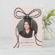 Esta elegante foto de festa de formatura rosa e preta, cor-de-rosa-pincelada, salva a data de lançamento com um arco preto chic com fotos circulares modernas em um simples fundo azul, e inclui salvar os detalhes da festa de formatura de data no verso.