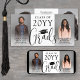 É uma formatura dupla! Anuncie a conquista de dois formando com anúncios de fotos personalizadas de graduação em conjunto com na moda. Todas as imagens e textos são simples de personalizar para cartões de anúncio ou convites de festas de formando. Além disso, as cores podem ser personalizadas com a ferramenta design Zazzle. O design moderno preto e branco apresenta uma caligrafia de script de estilo manuscrito com um boné de conselho de argamassa, uma elegante tipografia clássica e quatro fotos de sua escolha, como fotos de mais velho ou imagens da cerimônia de início. Este convite de formatura é uma forma na moda para anunciar uma celebração especial para dois formandos, como irmãos, melhores amigos, primos, gêmeos, irmão e irmã, etc. Parabéns para ambos os formandos!