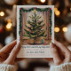 Cartão de Natal da nova casa ilustrado com árvore de natal e caixas móveis. A legenda diz "caixas móveis desembaladas, alegria totalmente empilhada!". Dito isto, toda a redação é perfeitamente editável para personalizar o seu anúncio em movimento de férias usando o modelo. Estimulado em rosa e verde - se você quiser mudar as cores, poderá fazer isso na ferramenta design.