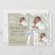 Anuncie o nascimento do bebê com três fotos e muito espaço para texto na frente e no verso deste lindo anúncio de foto de árvore de bétula. Laço azul suave e árvores de bétula brancas como papel.