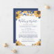 Se as circunstâncias exigirem que você mantenha seu casamento pequeno, você pode informar seus familiares e amigos que não poderão comparecer com este anúncio de casamento moderno, brilhante e alegre, apresentando aquarelas amarelas e azuis-navais de girassóis, flores e folhagens, "Atualização do Casamento" em elegante letra cursiva azul-marinho e os detalhes em tipografia simples azul-marinho. Você pode personalizar facilmente "Atualização do Casamento" para algo semelhante em comprimento (por exemplo, "Casamento Menor", "Casamento Reduzido", etc.), sua mensagem de casamento reduzida com mais detalhes e adicionar quaisquer eventos de casamento virtual e celebrações futuras.