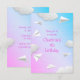 Hospedando uma festa de aniversário para um engenheiro aeronáutico em voga? Esta placa de convite de aniversário temática de avião de papel divertido apresenta vários aviões de papel branco dobrado ilustrados com trilhas de voo de linha tracejada com curva branca entre nuvens brancas puffy sobre um fundo de gradiente rosa / azul - personalize com os detalhes da sua festa - por katz_d_zynes