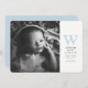 Uma introdução simples para o seu novo pequeno com uma foto de solteiro, uma grande inicial azul de bebê, espaço para estatísticas e nomes de pais junto com um cinturão azul de coordenação pontilhado. As cores de texto e backer podem ser alteradas clicando no botão "personalizar".