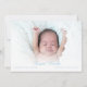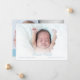 Cartão de nascimento de bebê fotográfico para apresentar seu lindo filho recém-nascido. A frente inclui sua foto de bebê, nome de script azul e estatísticas de natalidade. O reverso tem mais duas fotos e inclui uma mensagem de script branco e um nome(s) da família ou dos pais definidos em um fundo azul suave. Projetado por Thisnotme©