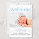 Um simples e doce anúncio de bebê para o seu bebê. Na frente, "bem-vindo" é escrito na moderna tipografia azul sobre uma foto do seu bebê; embaixo, você pode adicionar seu nome, data de chegada, peso e comprimento em uma tipografia de cinzas escuras macia. No verso, você pode adicionar três fotos adicionais, assim como os nomes de seus pais e irmãos encantados. Dica da foto: para obter melhores resultados, as fotos na frente e no fundo do verso devem ser retangulares e as duas fotos no verso devem ser quadradas ou ter seus assuntos no meio.