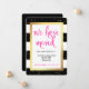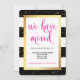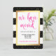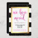 Este cartão elegante, na moda, diz "nós nos movemos" na tipografia rosa moderna e brilhante, e apresenta listras pretas e brancas com uma falsa estrutura dourada e confete. Personalize facilmente com suas novas informações de casa para que amigos e familiares possam manter contato!