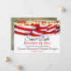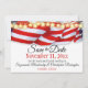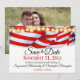 Envie sua participação de casamento personalizada "Save The Date" com uma borda superior de bandeirolas vermelhas, brancas e azuis com luzes de estrelas e SUA foto horizontal no verso. Basta substituir a foto pela sua e personalizar o texto, remover qualquer texto ou clicar em personalizar para selecionar um estilo de fonte, tamanho e cor de sua preferência. Foto de placeholder cortesia pixabay.com.