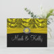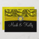 Amarelo brilhante e preto rico com um visual barroco drapeado, completo com uma fita de veludo amarelo e uma falsa jóia e fita de brilho com gema. Ótima maneira de fazer um anúncio.