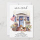 Anuncie sua mudança para a família e amigos com nosso anúncio patriótico e comovente com uma bela pintura aquosa de um cachorro Beagle, casa moderna com uma porta azul e a bandeira americana orgulhosamente exibida na varanda da frente. Este anúncio é perfeito para amantes de cães e qualquer um que queira anunciar seu novo endereço. Com seu esquema de cores vermelho, branco e azul, este anúncio é uma forma excelente de mostrar seu amor pelos EUA enquanto compartilha suas notícias emocionantes. Avise a todos que "nos mudamos!" e convide-os a visitarem-se e conhecerem o seu melhor amigo na sua nova casa. COPYRIGHT © 2023 Judy Burrows, Black Dog Art - Todos Os Direitos Reservados. Anúncio de Movimentação do Cão Pet Personalizado do Beagle