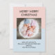 Bebê azul e rosa, garoto/garota gêmea "Feliz Feliz Natal" cartão de saudação de fotos de feriado anunciando a chegada de seus gêmeos garoto/menina.