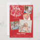 Um elegante cartão de natal de férias de colagem de 4 fotos para você personalizar com suas fotos especiais enquadradas em ouro, mensagem de feriado, nomes e estatísticas de natalidade. Os traços inversos caindo flocos de neve. Você pode personalizar a cor de fundo para corresponder ao seu tema de feriado. Projetado por Thisnotme©