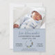 Deixe amigos e familiares saberem as boas notícias sobre o aniversário do seu doce bebê com estes elegantes anúncios de nascimento floral azul.Estes anúncios de nascimento de um bebê apresentam um lugar para colocar uma foto do seu novo bebê no topo do cartão. Personalize o fim do anúncio com todo o anúncio de nascimento do seu filho, como o nome, a data de nascimento, o peso e a hora de nascimento. Há um elegante buquê floral em forma de coroa, com pássaros voando na frente e atrás do cartão.