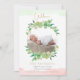Seus anúncios de nascimento serão adoráveis com esta foto moderna do seu bebê. Esta design apresenta tendências, aquarela, coroa coroa de folhas verdes de eucalipto ao redor da sua foto, e adorável, rosa e verde de menta, aquarela, fina, pinceladas no topo e no fundo. Folha de ouro, "Bem-vindo" no topo, e modelos para você embaixo.