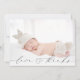 Os anúncios de natalidade elegantemente doces apresentam amor e obrigados e sua foto favorita de recém-nascido na frente e sua mensagem, nome do bebê, estatísticas de natalidade e seus nomes em letras de música nas costas.