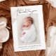 Cartão de nascimento simples e minimalista, com tipografia escrita à mão que diz "obrigado-te" com coração no meio. Você pode adicionar a foto do seu bebê recém-nascido no meio e as estatísticas do bebê no fundo. Você também pode adicionar uma segunda imagem com uma mensagem no verso.