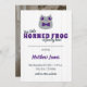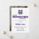 Avise o mundo sobre seu novo sapo! Esta carta bonita é feita em roxo e cinzas com um adorável sapo de coroa de bebê - completo com gravata - no topo. Personalize com os detalhes de natalidade do seu bebê e seus nomes e adicione uma foto vertical no verso.
