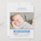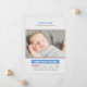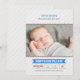 Anuncie o seu calouro do ano com este cartão de anúncio de nascimento de foto temática de baseball que apresenta um cabeçalho "Apresentando o Novo Membro da Nossa Equipe" em letras esportivas azuis e vermelhas. O nome do bebê aparece em uma faixa azul com estatísticas de nascimento em uma grade estilo placar. Detalhe de costura de baseball vermelha e listras diagonais cinza claro enquadram o design. Uma mensagem de texto "Recebido Com Amor" e todo o texto são totalmente personalizáveis.
