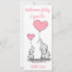 Este lindo Novo Anúncio de Bebê projetado com um Bebê e Elefante-Mãe segurando balões cor-de-rosa em forma de coração com texto: Bem-vindo, O Primeiro Nome do Bebê e Com Amor. Para personalizar, simplesmente insira seu texto em nosso modelo fácil, substituindo o exemplo.