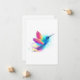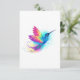 Beija-flor exótico brilhante e iridescente voando sobre um fundo branco, pintado com tinta aquarela multicolorida. Beija-flor arco-íris.