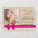 Simplesmente lindo o perfeito Anúncio de bebê para enviar a todos os seus amigos e familiares anunciando o nascimento do seu filho. Apresentando uma foto na frente sobre fundo marrom-claro com sugestão de design floral, cor-de-rosa no fundo e fita e arco cor-de-rosa, juntamente com toda a informação sobre o bebê.