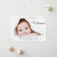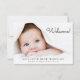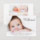 Anúncio de nascimento de fotos simples e giro. A foto do seu recém-nascido preenche a frente e é colocada com "Bem-vindo!" em um script contemporâneo (você pode mover este texto para outra área na placa para se adequar à sua foto selecionando "editar na ferramenta design"). Adicione seu nome, data de chegada e estatísticas de nascimento. No verso, adicione quatro fotos familiares adicionais, uma mensagem "bem-vindas" e os nomes dos pais e irmãos.
