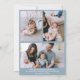 Esta mensagem de boas-vindas ao World Dusty Blue Photo Baby Birth card é moderna e minimalista. O cartão totalmente personalizável apresenta uma foto na frente com o nome do seu bebê, estatísticas de natalidade e nomes dos pais. O fundo mostra uma colagem de três fotos. Perfeito para compartilhar sua alegria, esta design de coquete minimalista é ideal para anúncios de bebês neutros em gênero. Celebre seu recém-nascido com este simples e elegante cartão de anúncio.