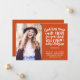 Anuncie sua formatura em segundo grau à sua família e amigos em estilo com este moderno cartão de anúncio de fotos cristãs.Este modelo apresenta sua foto à esquerda e à direita é um verso bíblia em uma tipografia moderna de escrita branca que lê "Deus tem mais em sua loja do que você pode imaginar. Ephesianos 3:20" com sua classe/ano, nome, nome da escola e data para você personalizar em um fundo laranja. A parte de trás do cartão é laranja. Parabéns pela sua formatura! Desenhada pela artista Susan Coffey.