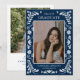 Show off your grad in a fun fiesta-style photo announcement featuring bold blue tones and vibrant details. Easily customize with your graduate’s photo and party info to create something personal and eye-catching.