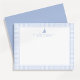 This blue gingham sailboat nursery note card is a charming choice for a baby boy’s stationery. Featuring a classic gingham border and a sweet sailboat detail, it’s perfect for thank-you notes, nursery messages, or thoughtful keepsakes.