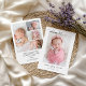 Anúncio de Nascimento do Bebê com "Bem-vindo" na frente e quatro fotos na parte de trás. As costas têm espaço para uma mensagem personalizada. Clique no botão editar/personalizar para personalizar este design.