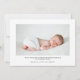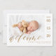 Anuncie e dê as boas-vindas à chegada do seu novo bebê com o nosso cartão de nascimento de fotografia simples e moderno. O design apresenta um esquema de fotografias de solteiro para mostrar a fotografia do seu novo bebê. Bem-vindo é mostrado em uma camada moderna de caligrafia em ouro, com a data de nascimento mostrada ao longo do lado e o nome do bebê e as estatísticas de nascimento ao longo do fundo. O verso apresenta uma segunda fotografia, juntamente com uma mensagem personalizada e os nomes dos pais.