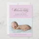 Anuncie seu novo bebê à família e amigos com este simples anúncio de nascimento de fotos em chic. Lavanda suave / violeta púrpura com texto de cinza quente escuro.