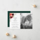 Arranjo floral elegante de aquarela boêmica em tons de tendências de folhagem botânica, rosa, vermelha e verde, Photo Wedding Save the Date Card. Projetado para combinar com a nossa Coleção de Sangue Boêmia. A cor de apoio, mostrada em verde esmeralda, pode ser personalizada.