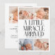 Modern Christmas theme birth announcement card featuring a bold typography text that says "a little miracle arrived" with 4 of your newborn pictures. This is a birth announcement card for the holiday seasons! Add your pictures, birth stats, and a message! The background is white.