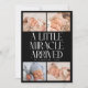 Modern Christmas theme birth announcement card featuring a bold typography text that says "a little miracle arrived" with 4 of your newborn pictures. This is a birth announcement card for the holiday seasons! Add your pictures, birth stats, and a message! The background is black.