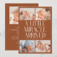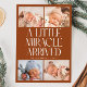 Modern Christmas theme birth announcement card featuring a bold typography text that says "a little miracle arrived" with 4 of your newborn pictures. This is a birth announcement card for the holiday seasons! Add your pictures, birth stats, and a message! The background is terracotta.