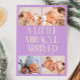Modern Christmas theme birth announcement card featuring a bold typography text that says "a little miracle arrived" with 4 of your newborn pictures. This is a birth announcement card for the holiday seasons! Add your pictures, birth stats, and a message! The background is lemon yellow and wisteria.