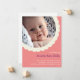Mostre a todos o que é uma torta bonita para o seu bebê. Apresente sua nova adição à sua família e amigos com esses cartões de anúncio de bebê de bolinhas doce. Sua foto do bebê está colocada dentro de um quadro circular de rosetas. As estatísticas de nome e nascimento são apresentadas em seguida em tipos contemporâneos.